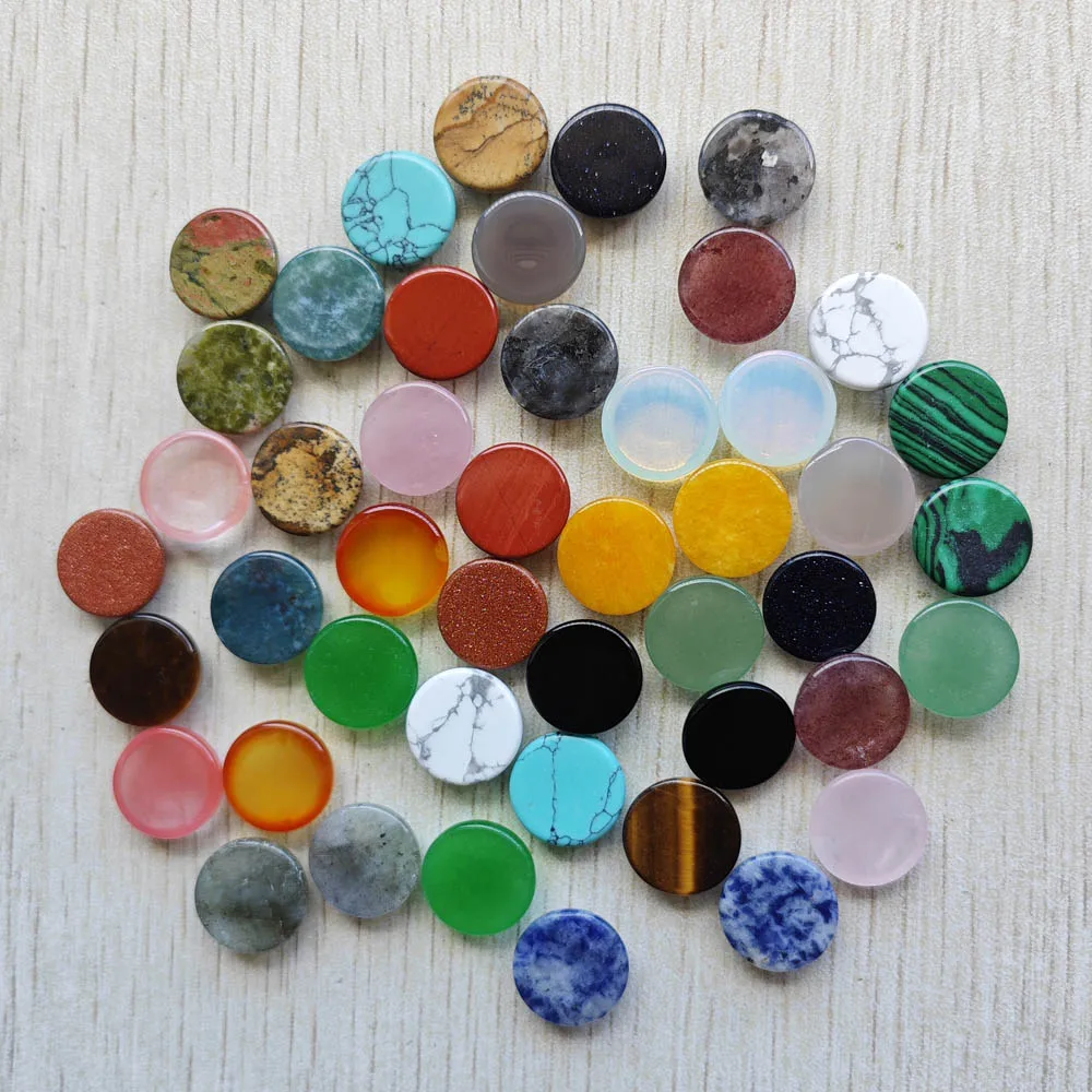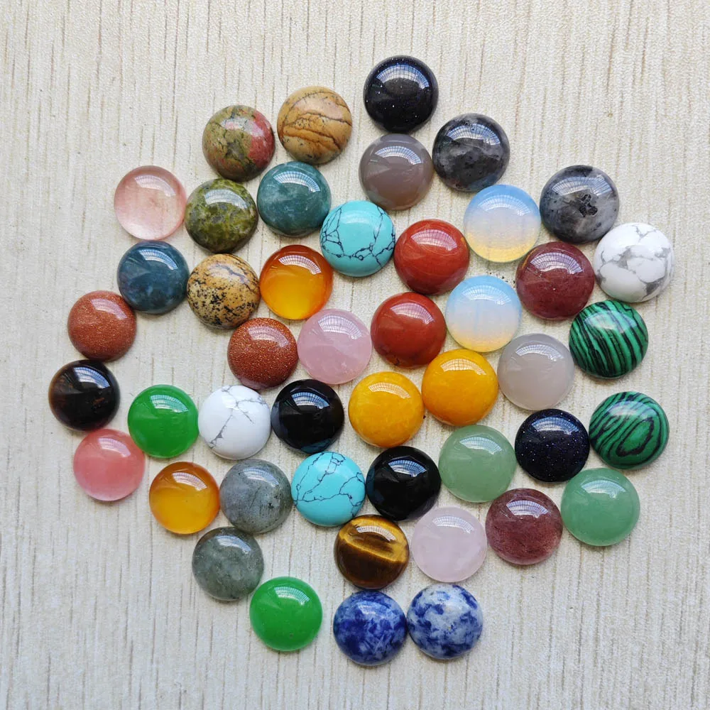 Elevate your jewelry creations with these 14mm natural stone cabochon beads. Each lot contains 50 high-quality round beads in a variety of natural colors and patterns, perfect for bracelets, necklaces, earrings, and other DIY jewelry projects.