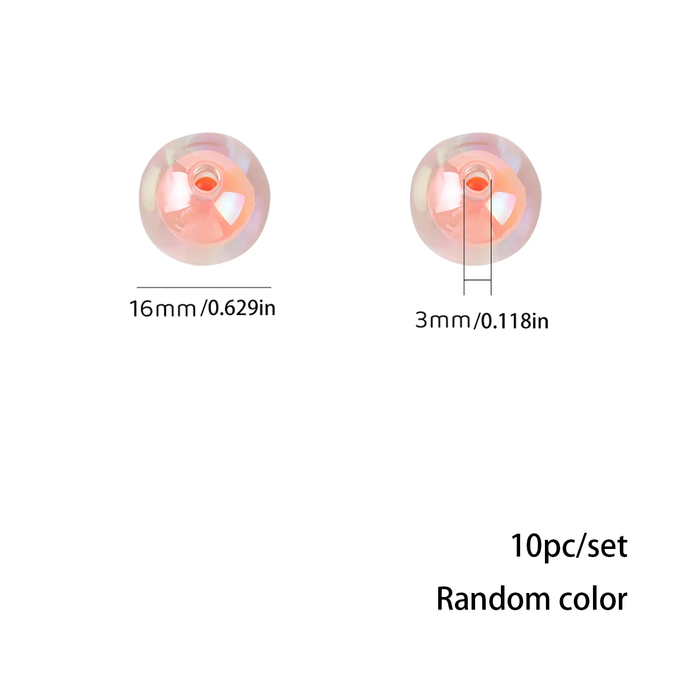 16mm Acrylic Plated Colored Beads – 10 Pieces/Bag, Random Styles for DIY Jewelry