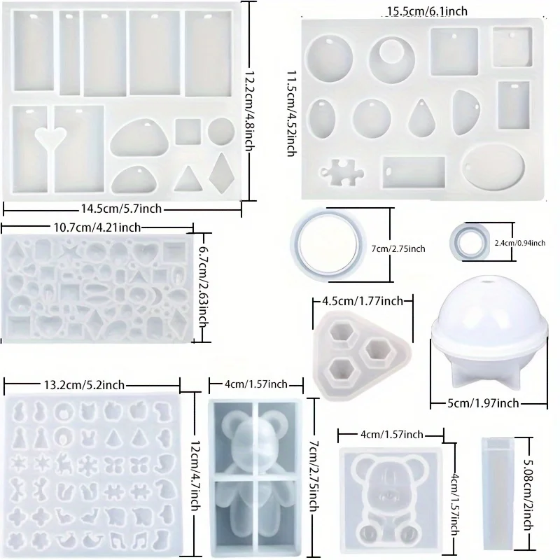 Unleash your creativity with this 384pcs Silicone Resin Casting Mold Kit, perfect for DIY jewelry making and craft projects. Includes a wide variety of pendant, necklace, earring, and geometric shapes molds, allowing you to design unique, personalized resin jewelry. Made from high-quality, flexible silicone, each mold ensures easy release, smooth edges, and durable performance. Ideal for epoxy resin, UV resin, and other casting materials, this kit is perfect for hobbyists, beginners, and professional crafters. Elevate your creations with a comprehensive mold set that inspires endless designs.