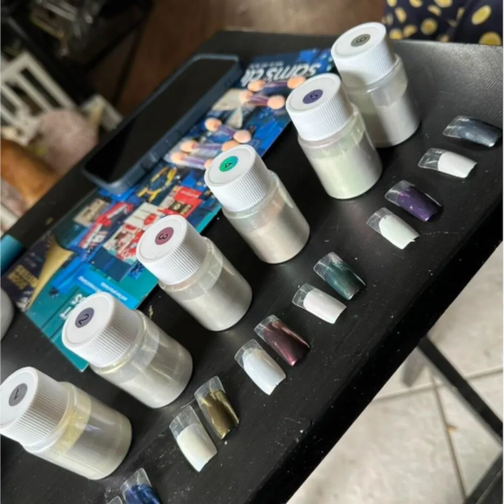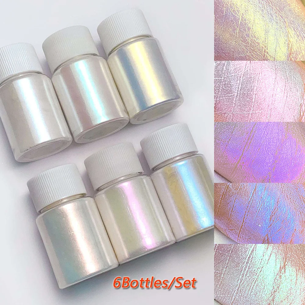 Create mesmerizing nail designs with this 6 Colors Aurora Mermaid Chrome Nail Powder Set. Featuring white pearl, iridescent mica, and chameleon unicorn chrome effects, this ultra-fine powder delivers a stunning mirror-like shine that shifts beautifully under different lighting. Perfect for nail art, resin crafts, and DIY decoration, the smooth, highly pigmented formula blends effortlessly for professional-looking results. Ideal for nail technicians and DIY artists, this set brings vibrant, magical color effects to every design.