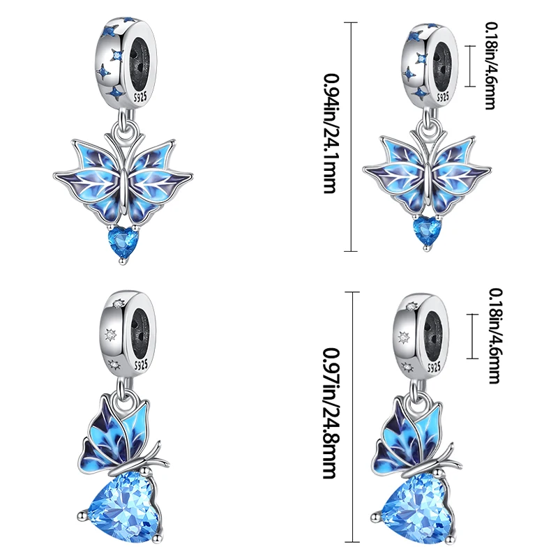 Add a touch of elegance and nature-inspired charm to your jewelry with these 925 Sterling Silver Blue Series Pendant Charms. Featuring designs such as dragonflies, butterflies, birds, pansies, and flowers, each charm is crafted to fit bracelets or necklaces with a 4mm hole diameter.