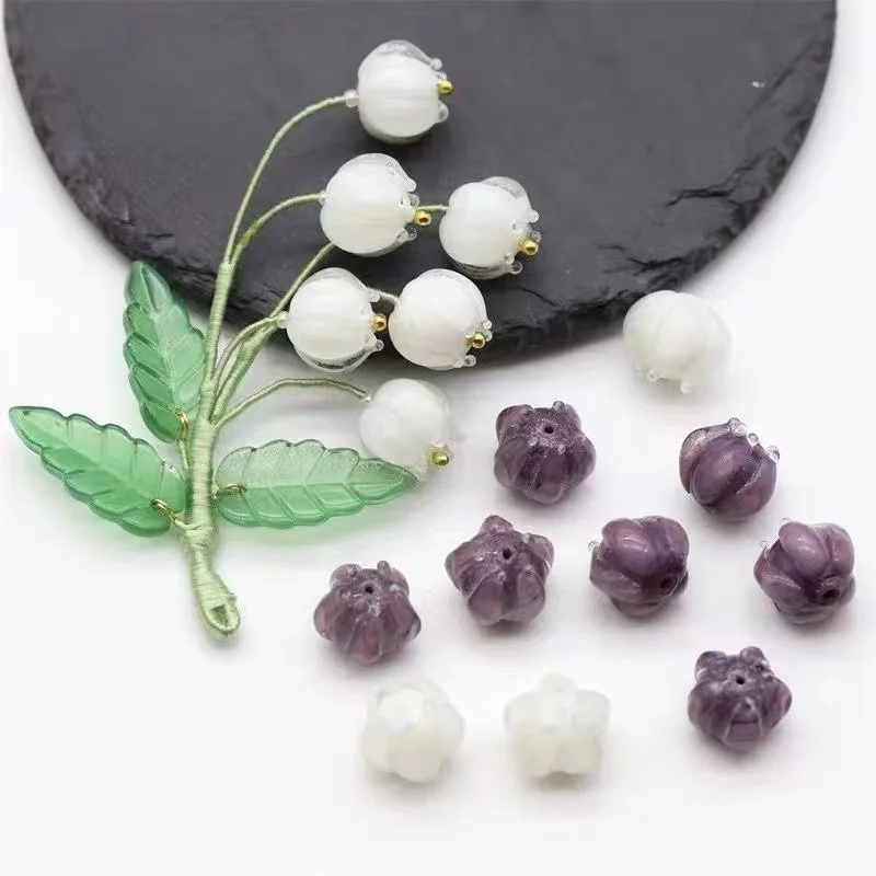 Crafted with high-quality glass, each bead features a delicate bell flower shape, reminiscent of orchids, providing a unique lampwork-style accent to your designs. Lightweight and durable, they are easy to string and combine with other beads, making them ideal for creative, professional, or hobbyist jewelry makers.