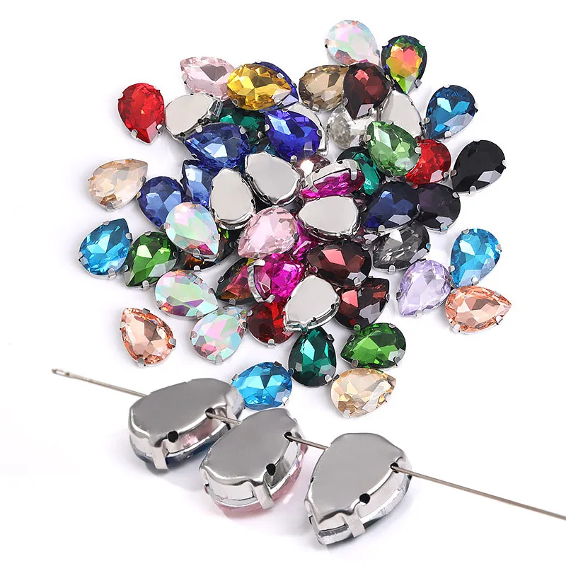 Enhance your DIY projects with these water drop claw rhinestones and hand-stitching needles, perfect for decorating bags, clothing, and craft items. Made with a durable stainless steel base, these rhinestones are easy to attach with hand stitching for a secure and sparkling finish.